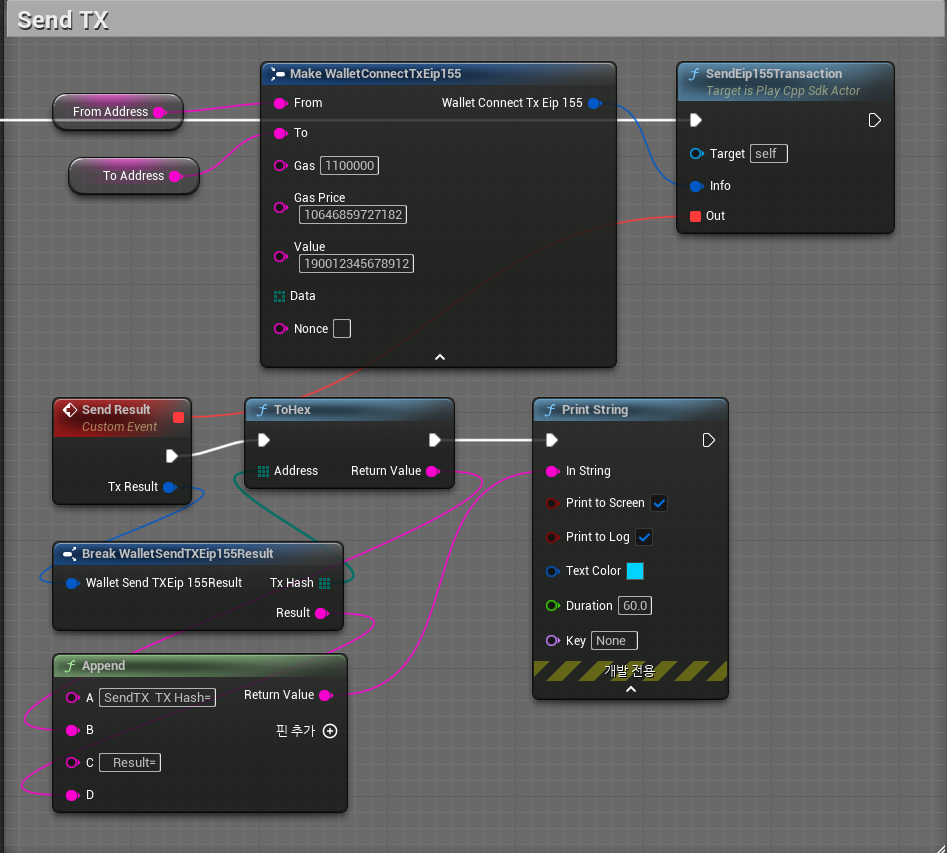* Once the WalletConnect session is established, the SendTX screen appears in the user's wallet.