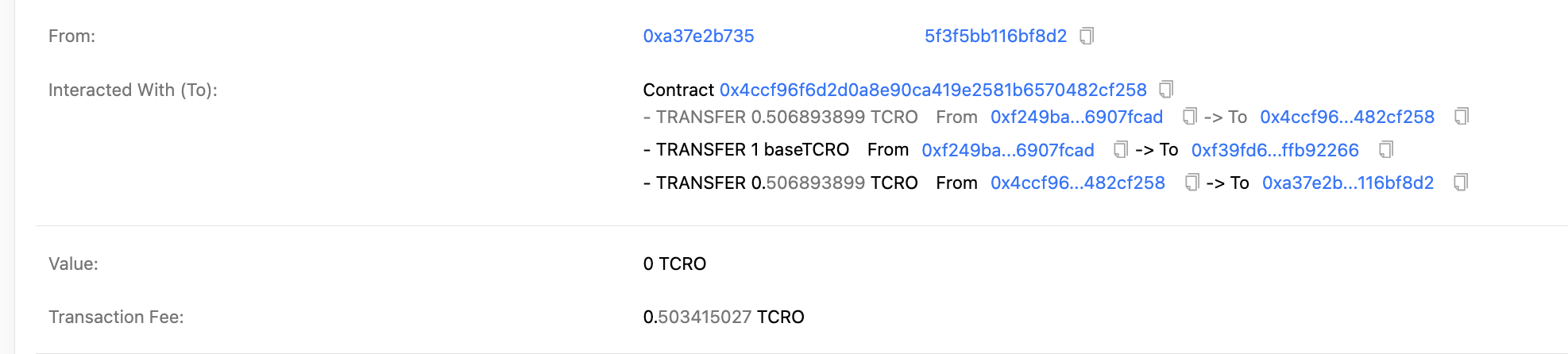 Transaction hash: 0xcd54434b8c949...2580930cf14045cc3829ef09feb73ec9a