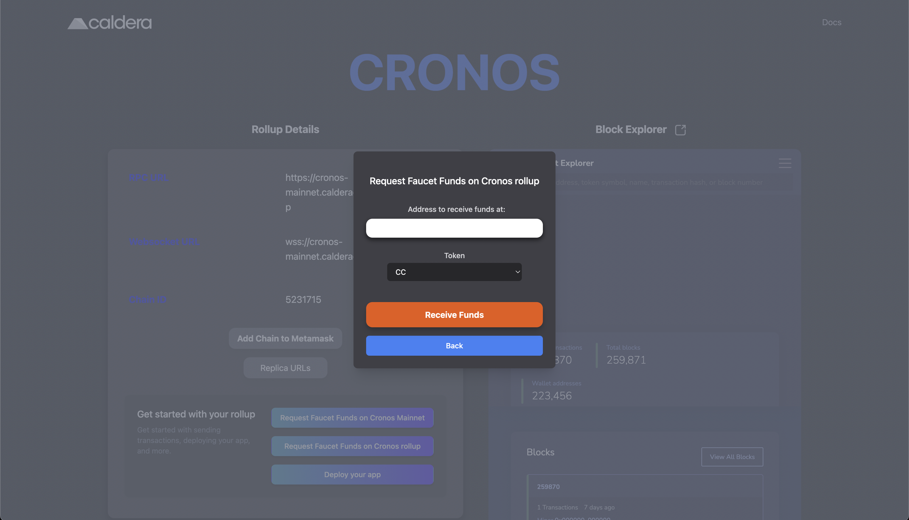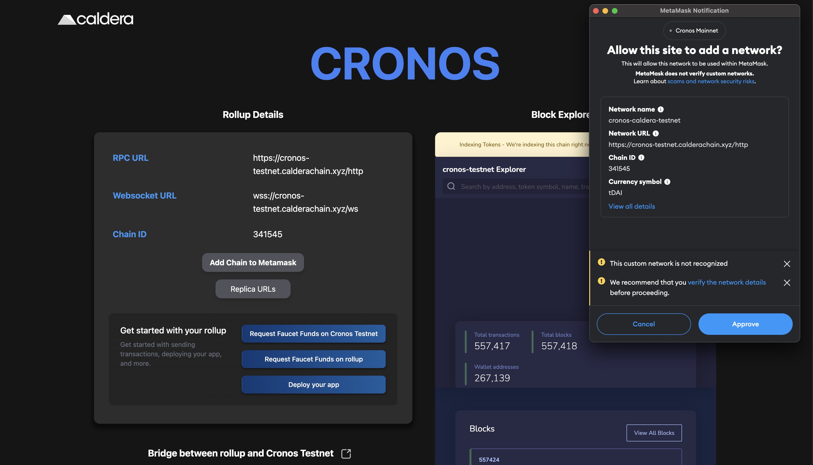 Let's take a look at how we can start using Caldera L2 Testnet, which is a rollup on the Cronos Testnet.